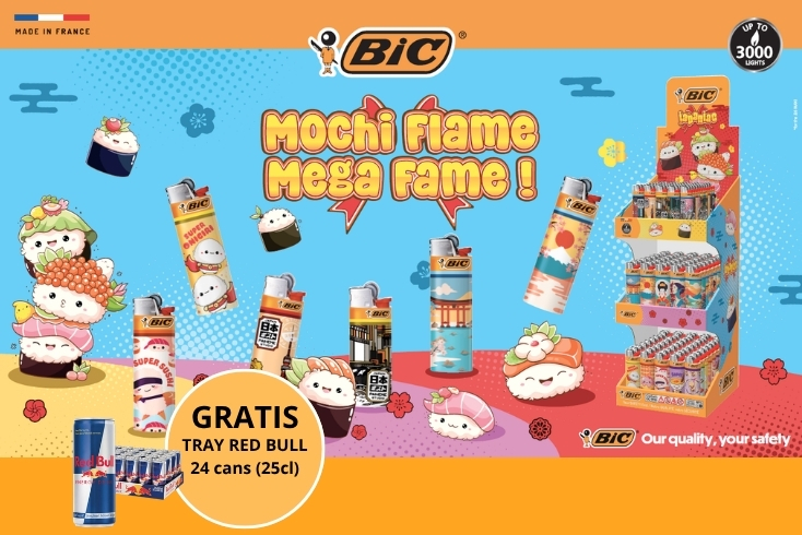 Achetez 1 présentoir BIC Maxi J26 (50 briquets) et recevez 5 sachets de rasoirs BIC 1-Blade Sensitive offerts.
